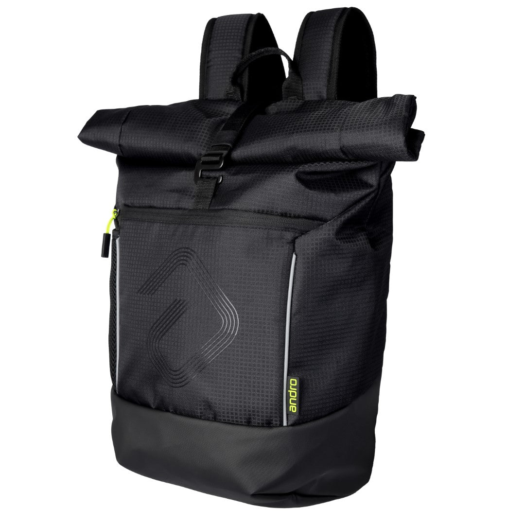 Modny plecak z zamknięciem typu roll-top i dużą pojemnością. Przestronna główna komora z zamykaną na zamek kieszenią wewnętrzną oraz wbudowanym miejscem na laptopa. Mniejsza kieszeń na zamek z przodu oraz siateczkowa kieszeń z boku. Wygodne wyściełanie pleców i wyściełane szelki zapewniają wysoki komfort. Wytrzymały materiał chroniący przed wilgocią.