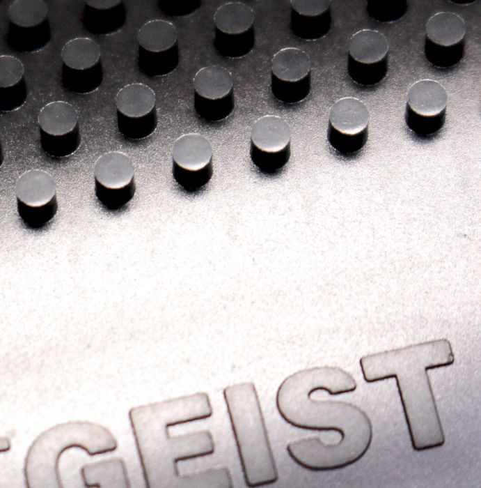 Zeitgeist jest niewrażliwy na nadchodzący spin, wolny i ma średnio twardą mieszankę gumy. Wypustki mają cylindryczny kształt bez żadnych wspierających stożków u dolnej części wypustek. Wierzchołki wypustek są płaskie i bardzo chwytne. Wypustki mają średnią szerokość, a przestrzeń między nimi jest bardzo duża.